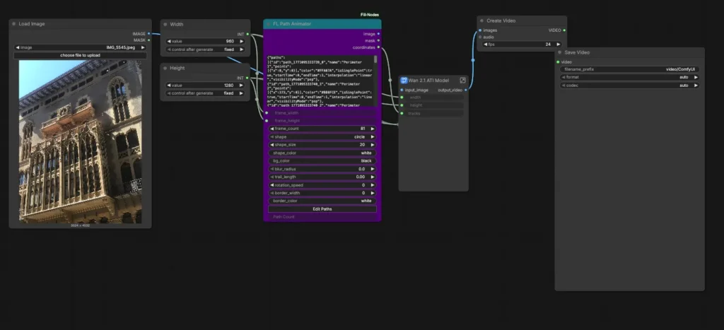 Unlike standard text-to-video generation which often results in unpredictable "hallucinations," this workflow utilizes Trajectory Control within ComfyUI. It gives Control over: Path Animation: Using a spline-based editor, I manually drew the "wind" paths across the architectural facades. This allows for precise control over which direction pixels move and at what velocity [01:26]. Pinning & Static Constraints: To maintain the "subtlety" mentioned in the concept, specific architectural anchors (like the church towers) were "pinned" in the workflow [01:18]. This ensures the camera and core structure remain stationary while only the atmospheric elements—like light reflections and shadows—are influenced by the trajectory paths. Temporal Interpolation: Using start/stop percentages and easing functions (Ease-In/Out) [02:11], the motion was synchronized to the BPM of the Ableton soundscape, creating a cohesive link between the visual "wind" and the audio environment.